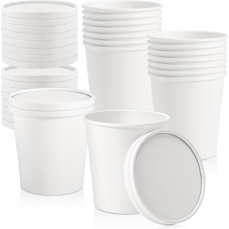 Packaging Includes: 25 Pack Disposable Paper Soup Containers with Lids