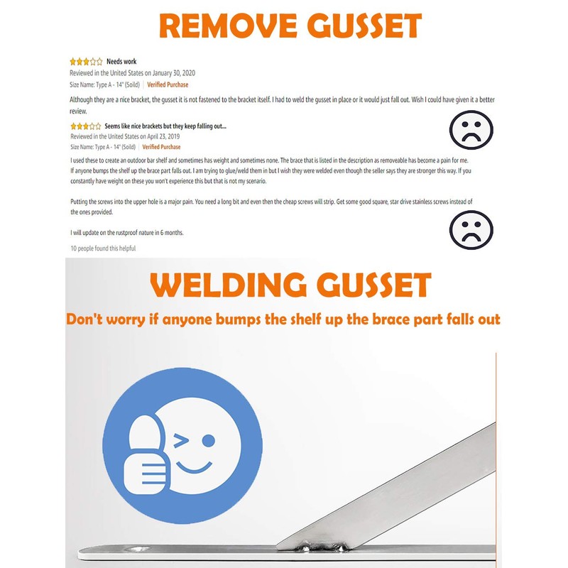 - No Paint, More Durable - The Shelf Brackets are constructed of Type premium grade stainless steel, no paint off, more durable. Surface brushed treatment, build to resist daily scratches, corrosion and tarnishing. Throw away your paint shedding brackets