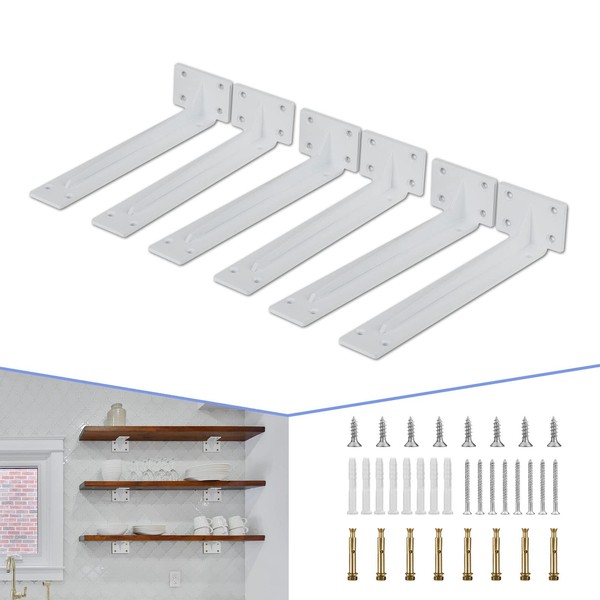 CLT Shelf Bracket( White) , 10” Quarter Inch (1/5") Thick- Max Load: 330 lb Rustic Industrial Modern Farmhouse Heavy Duty Corner Brace Joint Right Angle Bracket for DIY Table Bench, Pack of 6