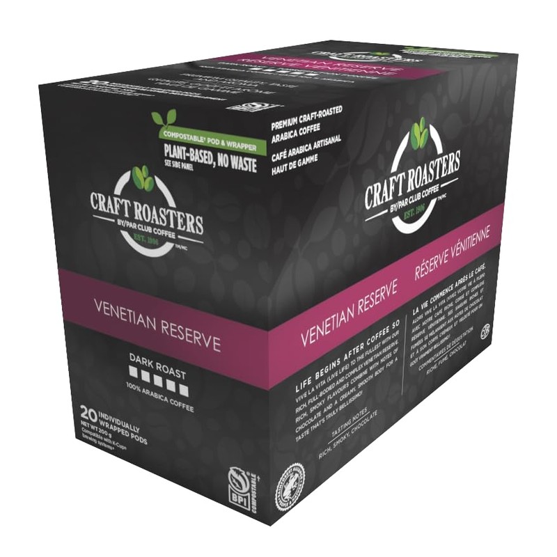 Club Coffee Craft Roasters Venetian Reserve - Dark Roast Single Serve Coffee K-Cup Pods, Compostable Coffee Pods, Keurig Brewer Compatible, Rainforest Alliance Certified, 20 Count