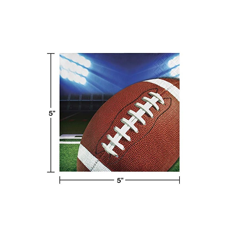 Club Pack of 192 Brown and White Football Field Disposable Paper Party Beverage Napkins 5"