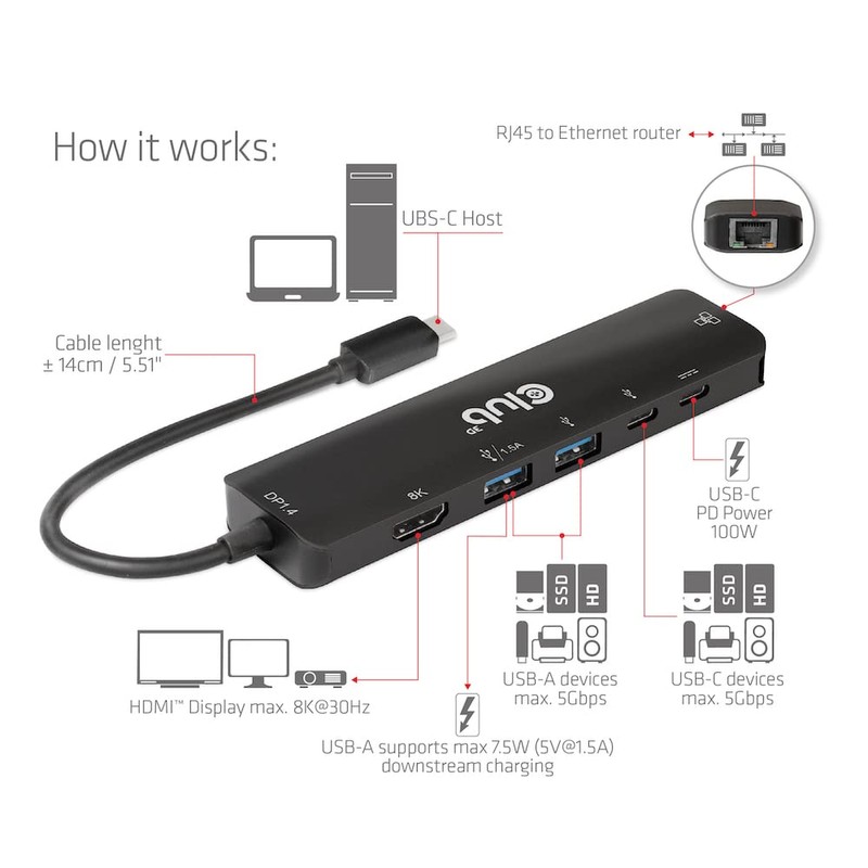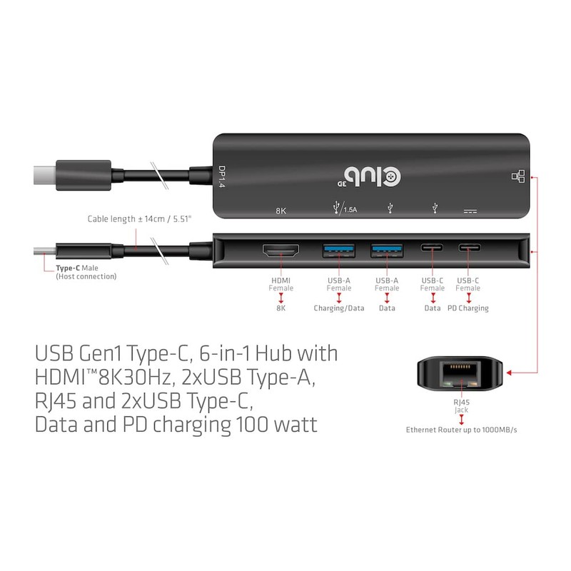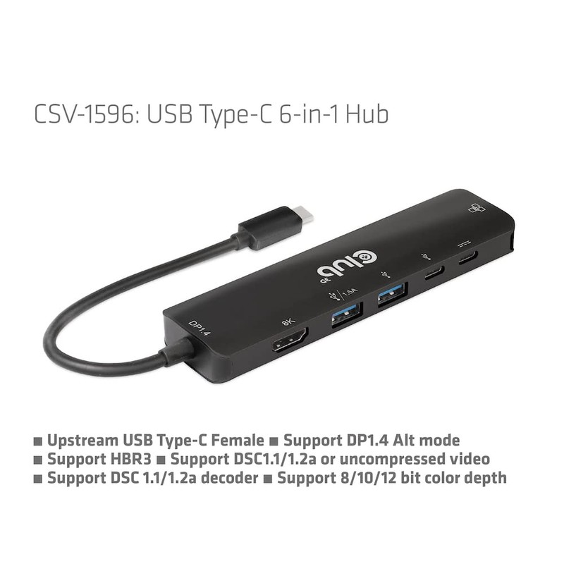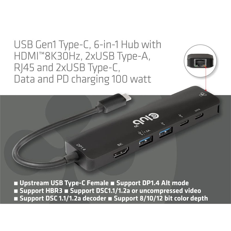 Club3D USB Type-C 3.2 6-in-1 Hub HDMI™ 8K30Hz PD 100 Watt