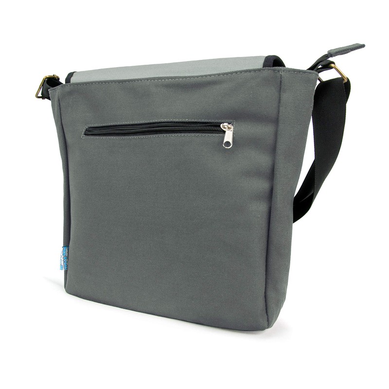 - Cross body strap with quality brass fittings. Adjusts to fit adults and children. Zip up pocket on reverse.