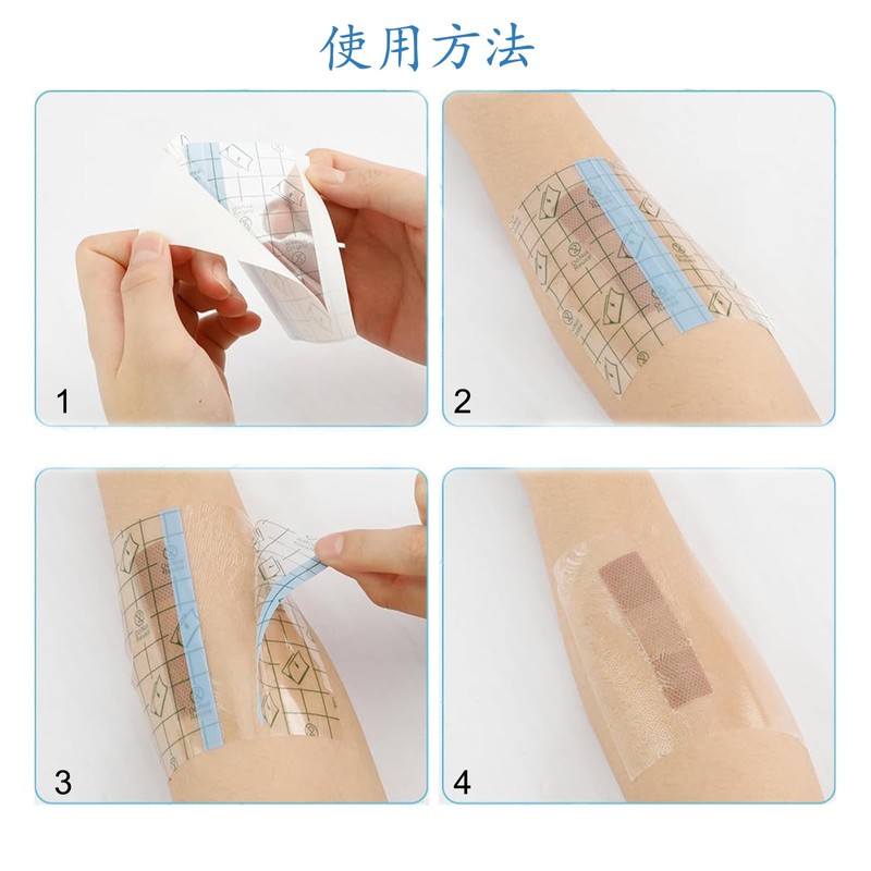 - 【使い勝手がよい】キズに必要なガーゼなどをかけ、本製品の後ろから剥離紙を剥がして、キズに貼ってから、表面の剥離紙を剥がしたら貼り完成です、使い捨てなので、感染の心配はありません。