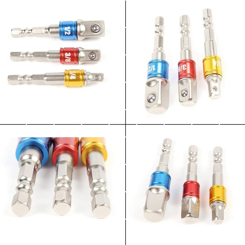 • Package Includes: 3 x Hex Socket Adapters. Shaft Diameter: 6.35mm 3 Drive: 0.2 inch (6.35 mm) (1/4 inch), 0.3 inch (9.5 mm) (3/8 inch), 0.5 inch (12.7 mm) (1/2 inch)