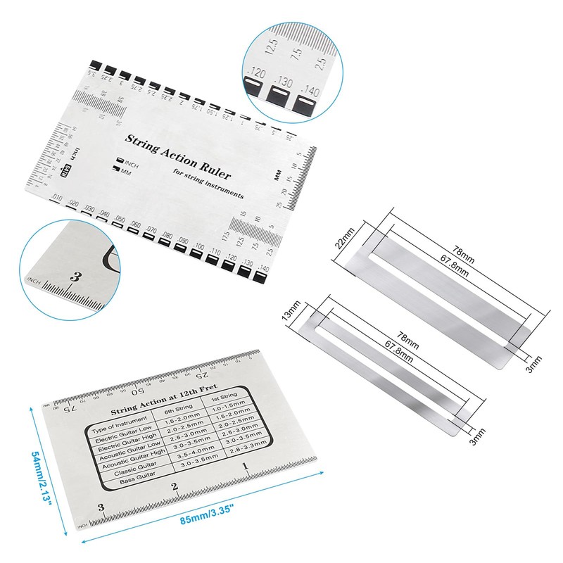 - Set Contents: Fret polishing x 2, string height scale x 1