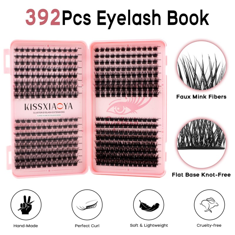 - The new DIY eyelash extension kit: 392 eyelash clusters made of high quality black PBT material, which is soft to the touch and comfortable to wear, silky smooth and shiny without hurting the skin and eyes, easy to grip at the root with tweezers and not fall apart. Designed for DIY eyelash extensions, easy to use at home or when travelling.