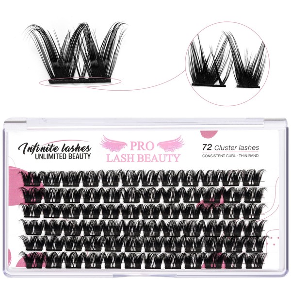 - Pack of 72 cluster eyelashes: The hottest cluster eyelashes on social media are now available. PRO LashBeauty offers 72 pieces in one box. Assorted lengths from 8 mm to 16 mm. You get more eyelashes for the same price and can also reuse them.