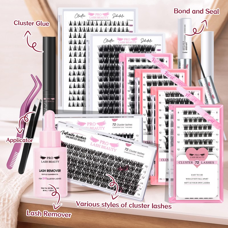 - Pack of 72 cluster eyelashes: The hottest cluster eyelashes on social media are now available. PRO LashBeauty offers 72 pieces in one box. Assorted lengths from 8 mm to 16 mm. You get more eyelashes for the same price and can also reuse them.
