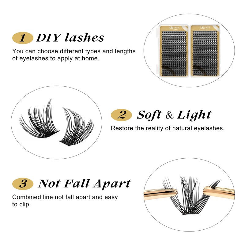 QUEWEL lash clusters extensions are very soft, matte black. Natural fluffy, enlarge your eyes and make you look more attractive!