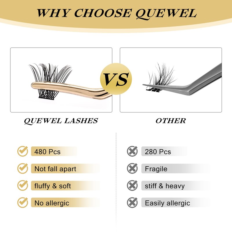 - 🌺【Satisfactory After-sales Service】QUEWEL focuses on providing you with high-quality eyelash extension clusters and serving your beauty. If you have any questions about our individual false eyelashes, please feel free to contact us, we will reply you within 24 hours. Hope you enjoy DIY lash extensions!