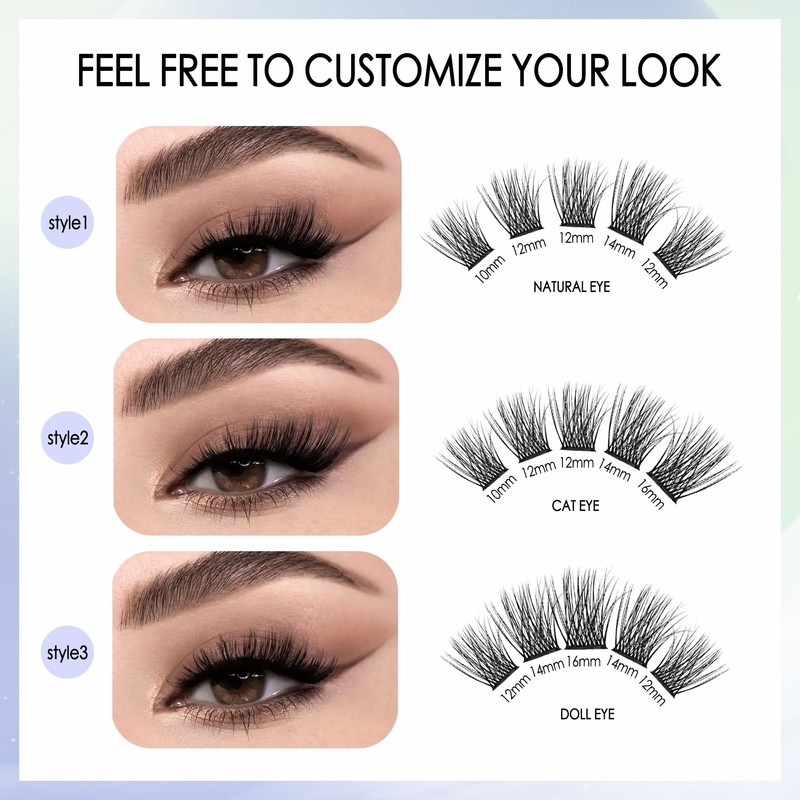 - Length Mixed Cluster Lashes: Made of premium black PBT material, Soft and fluffy just like natural lashes.Thin band lashes clusters to ensure the lashes will not hurt your eyes.