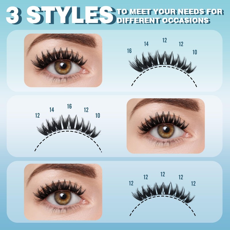 - 【Safe & Gentle Individual Eyelashes】Hypoallergenic materials hug lash lines comfortably. Eyelash clusters stay flexible yet durable, removable without tugging.The latex-free glue holds 12+ hours yet removes cleanly, while ultra-soft clusters feel weightless all day.