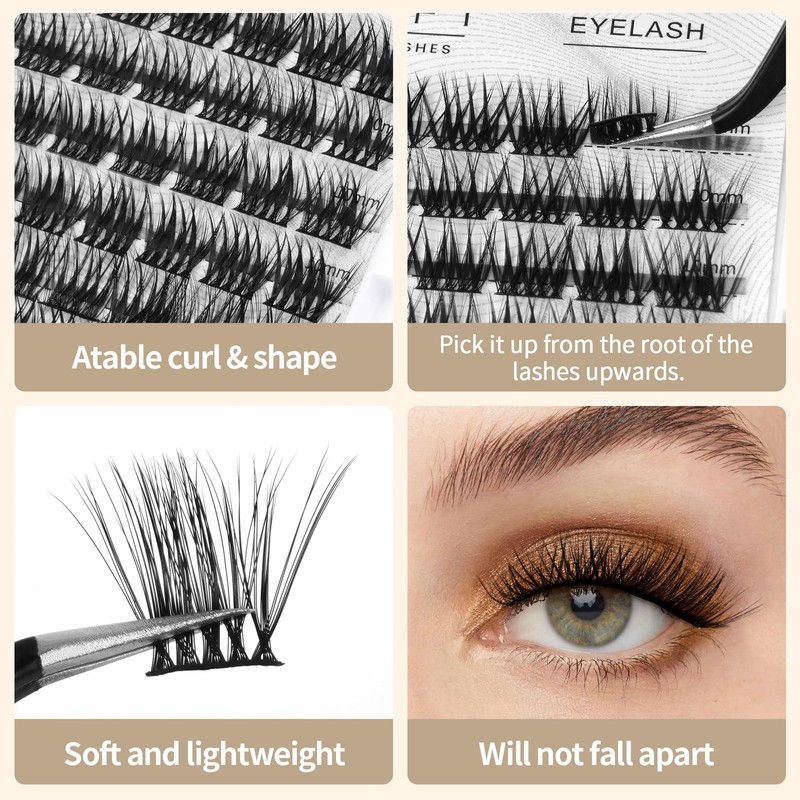 - đź’ź MULTI-DIMENSIONAL EFFEC: Each cluster lashes consists of multiple pieces, fluffy and natural, making your eye makeup more attractive. Whether you are attending a party, stage performance or taking photos, it will make you the center of attention.