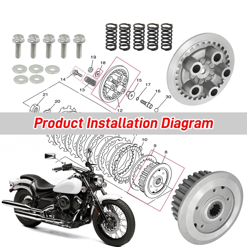 Clutch Center Inner Hub & Outer Pressure Plate Gasket Kit Compatible with Yamaha V Star 650 XVS650 1998-2016 OEM# 22U-16351-00-00 4VR-16371-00-00
