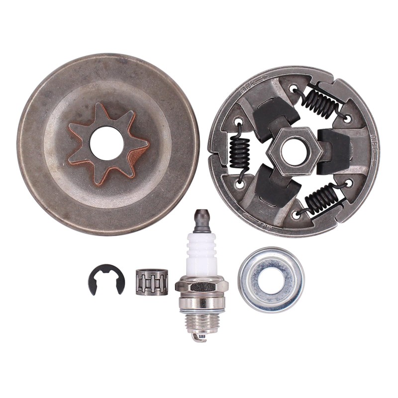 - Box contents: 1 x clutch drum; 1 x clutch kit; 1 x needle bearing; 1 x washer; 1 x E-clip; 1 x spark plug
