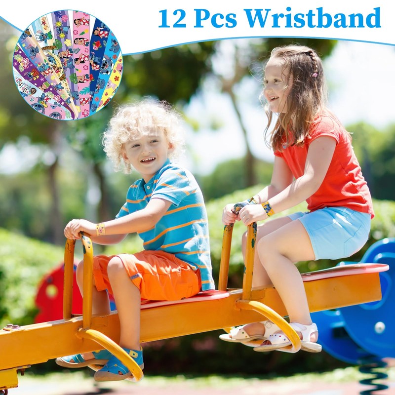 - Stit-ch party accessories: package contains 12 slap bracelets, 12 key rings, 12 neutral pens, 50 cartoon stickers, perfect accessories for all children's birthdays. Lilo & Stit-ch party bags will put a smile on their faces and unforgettable memories