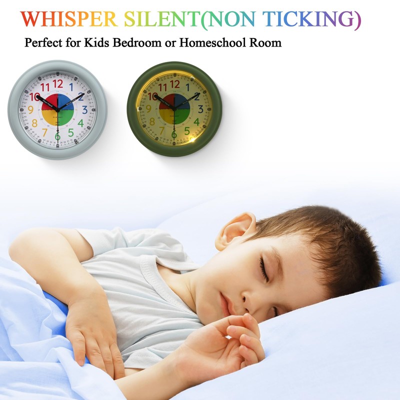 - [Silent, Non-ticking ,Accurate Mechanism]: Powered by 3*AA Batteries(1 AA for quartz movement,2*AA for LED light sensor), the clock operates silently, ensuring a peaceful environment without disruptive ticking noises for kids bedroom,school or homeschool