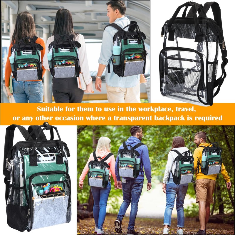 - See through Divider Design: the transparent backpack design allows you to immediately lock the items you need, and at the same time, you can easily pass the security check without spending more time looking for and checking; The divider allows you to better classify and manage your items; The straps are adjustable to suit people of different ages, including children and adults, and the zipper design makes your items safer and easier to store