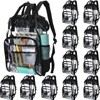 - Large Capacity Multi Pocket Design: you will receive 12 heavy duty clear backpacks made of PVC material, measuring 15 x 10.63 x 4.33 inch, with multifunctional storage compartments that can fully accommodates the items you need at school or work, such as laptops, books, notepads, mobile phones, glasses, keys, water bottles, folding umbrellas and more, large quantities are more suitable for school charity donations