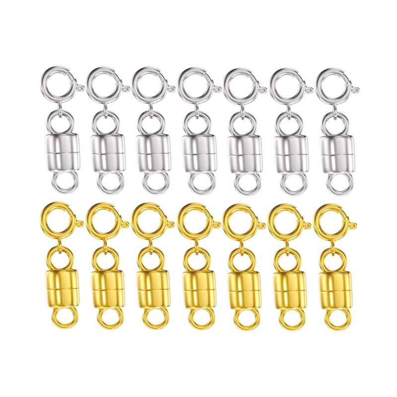 Clysoru Magnetic Necklace Clasp 14k Gold and Silver Beads Chain Extender Safety Buckle (14pcs Golds+Silvers)