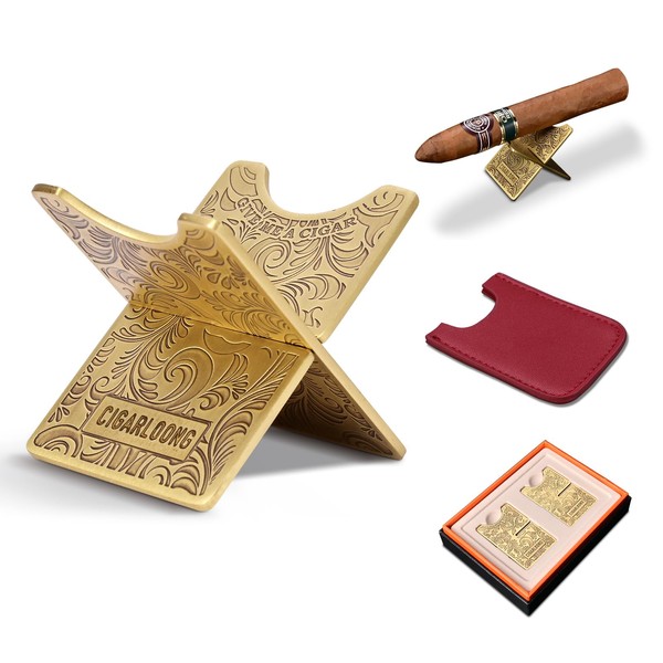 CLZOONG Cigar Holder Foldable Stainless Steel Cigar Stand with Exquisite Carved Pattern Travel Cigar Rest (Gold)