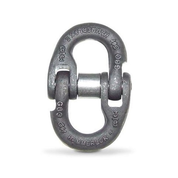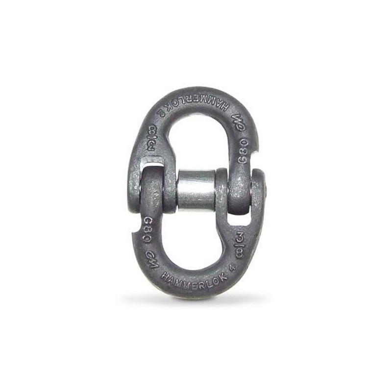Constructed of drop forged alloy steel and used primarily in the construction of overhead lifting slings. Specifically used for connecting the chain branches to the master link and to the hook attachments. Dual-rated Hammerlocks meet the strength levels of Grade 80 and 100.