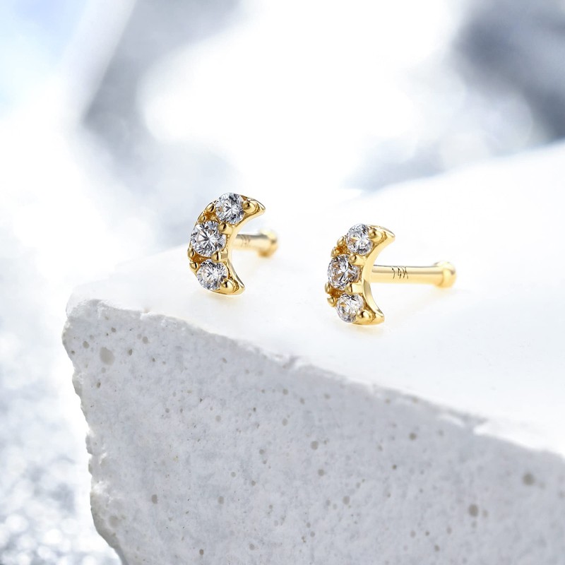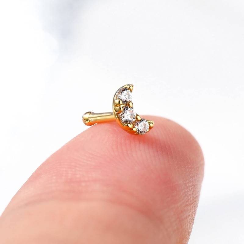 CM Crareesi Mania 14K Gold Nose Rings Moon Nose Piercing Stud 20G Straight Nose Rings Studs 14K Solid Yellow Gold Nose Ring Studs