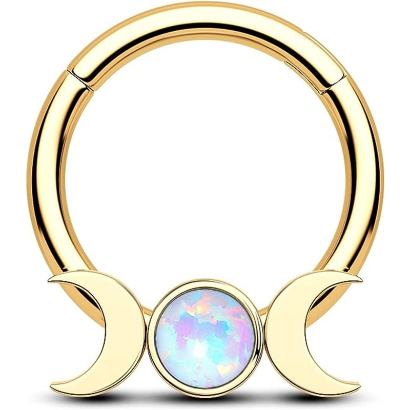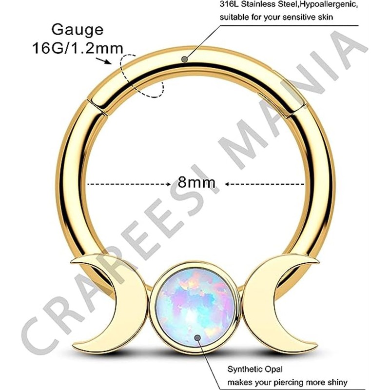 CM Crareesi Mania Septum Piercing Silver Gold 16G Moon Phase Nose Piercing Ring Surgical Steel Daith Piercing Gold Opal 8 mm/10 mm Helix Daith Cartilage Conch Earrings for Women, Opal
