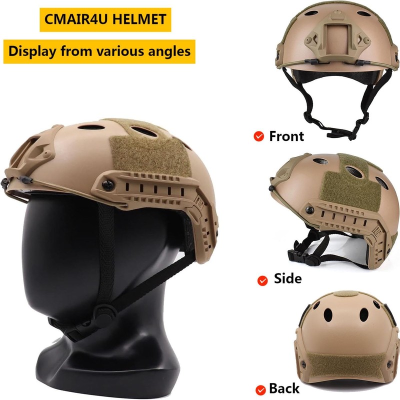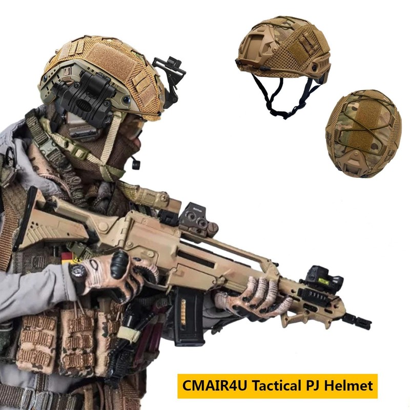 CMAIR4U TAN Adult Unisex Airsoft Tactical Helmet with Cover, PJ Fast Helmet, ABS Material, 550g, Medium, Suitable for Head Circumference 22"-24" inch