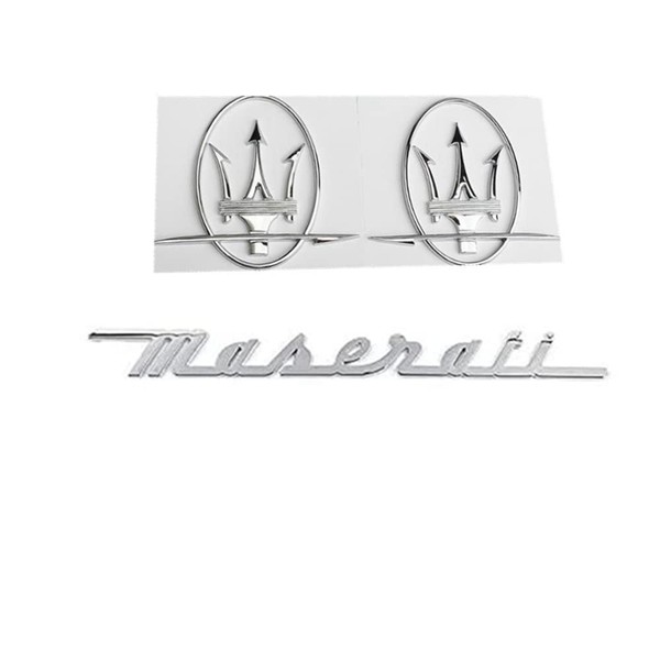 CMAOS 3PC Set Silver Emblem ForMaserati RH & LH Side Trunk Logo Badges Nameplate (3pcs Silver)