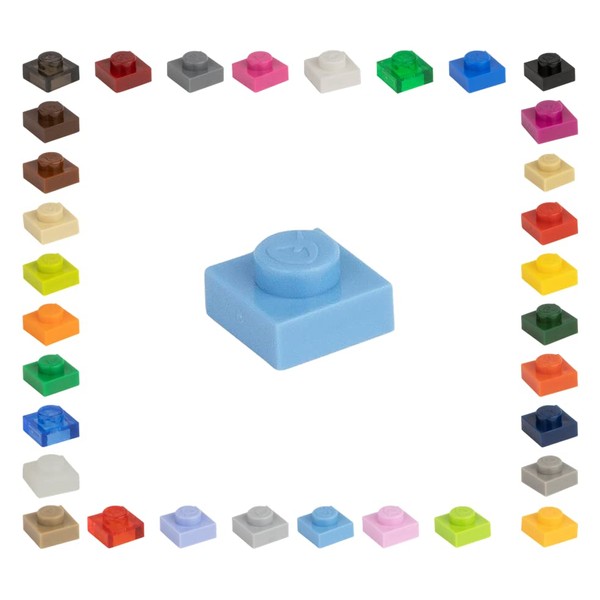 CMC imports 100 Mosaic Tile Building Blocks 1 x 1 Nubs Compatible 34 Different Colours Tiles Clamping Blocks (890 - Light - Blue)