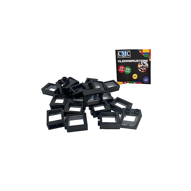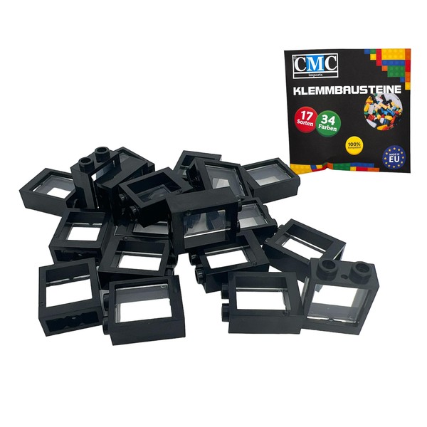 CMC imports 20 x Window with Disc Clamping Blocks Various Colours to Choose From Building Blocks 1 x 2 x 2 Nubs Window Frame (650 - Black)