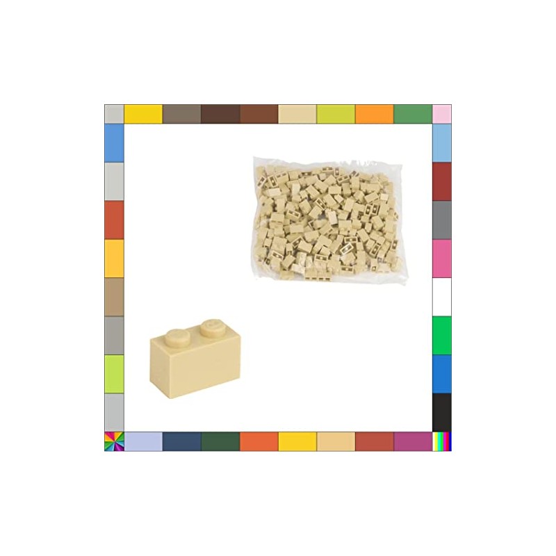 CMC imports 200 Clamping Blocks, Briks Building Blocks, 1 x 2 Nubs, Compatible, Free Selection, 35 Colours (094 Beige)