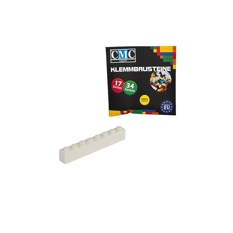 CMC imports 50 Clamping Blocks Building Blocks Basic Building Blocks 1 x 8 Nubs Compatible 8 Nubs Bricks 34 Different Colours (713 - White)