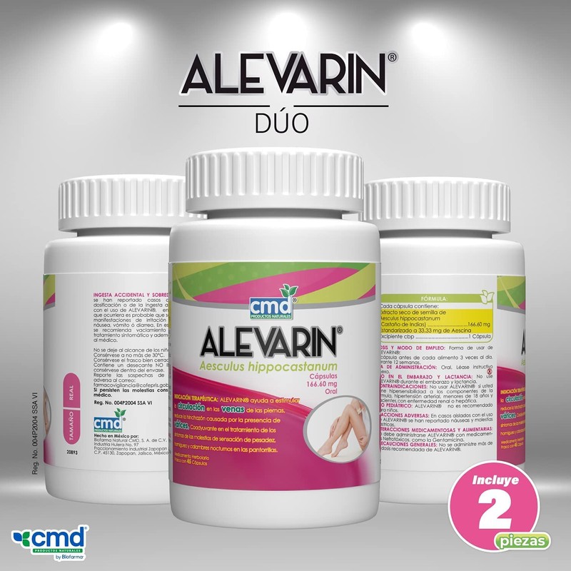 - INDICACIÓN TERAPÉUTICA: ALEVARIN ayuda a estimular la circulación en las venas de las piernas, reduce la hinchazón causada por la presencia de várices. Coadyuvante en el tratamiento de los sitomas de las molestias de sensación de pesadez, hormigueo y calambres nocturnos en las pantorrillas