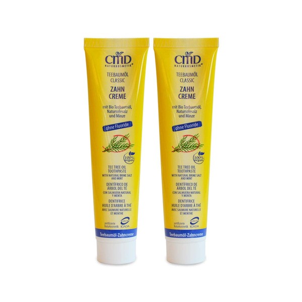 CMD Tea Tree Oil (2 x 75 ml), Mild Organic Toothpaste, Vegan, Fluoride-Free, Natural Cosmetics