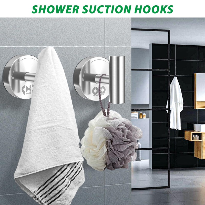 CMDZHF 4Pcs Suction Cup Hooks for Shower Heavy Duty Suction Cup Hooks for Glass Window Bathroom Suction Hooks for Wall, Kitchen, Glass, Mirror, Tile, Towel, Coat, Robes, Loofah -Chrome