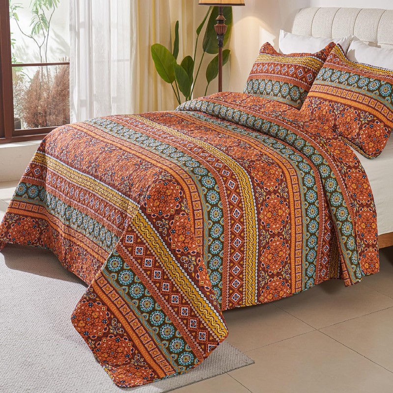 Cmfshape Orange Quilt Sets Bedspread Set 100% Cotton Boho Bedding Set, All Season Use Lightweight Reversible Coverlet Quilts with 2 Pillow Shams(King 106"x96")