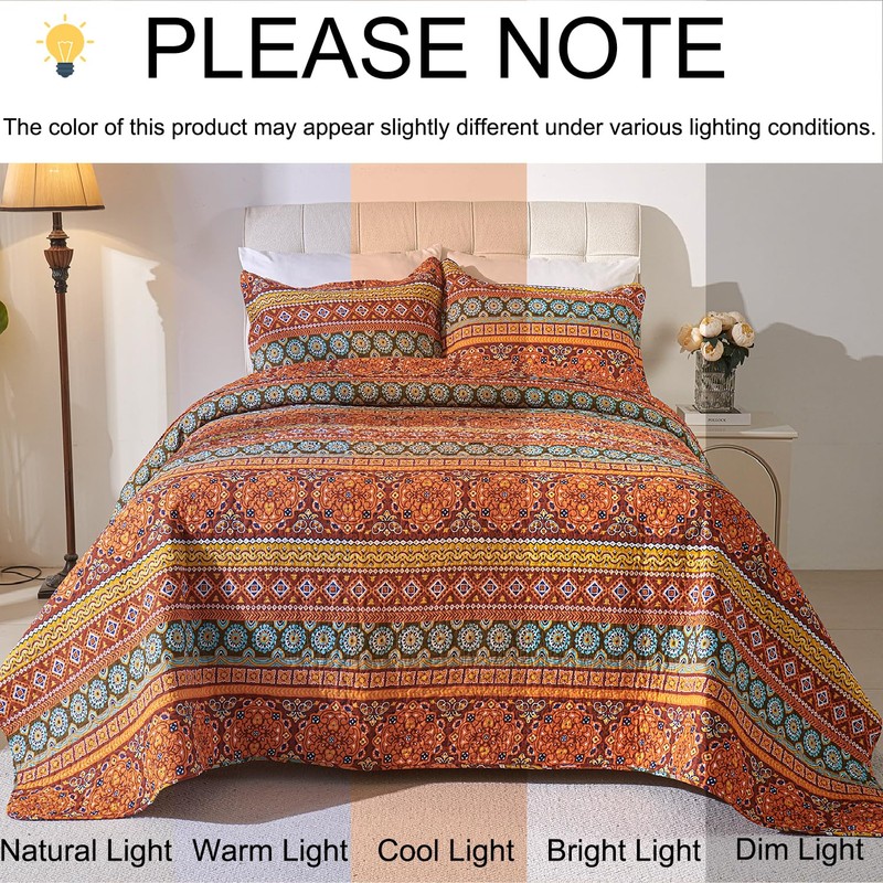 - 【High quality fabric】Our orange boho quilt are made of durable 100% cotton,with 220g filling cotton, super soft and lightweight,cooling, warmth, breathable,making you feel more comfortable and warm when you sleep.