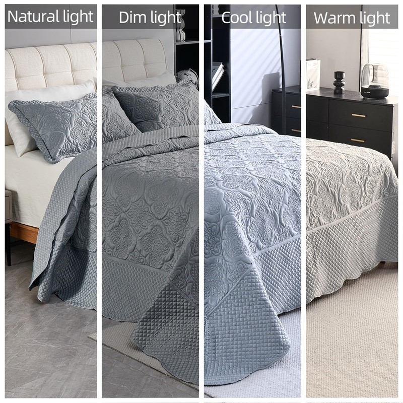 - 【Silk-like Softness】: Crafted from premium fabric, these silk-like stain quilt set provides extreme cozy and a gentle touch for sensitive skin. Our bedspread also offers a cool sensation, making it perfect for a comfortable sleep during hot summer nights.