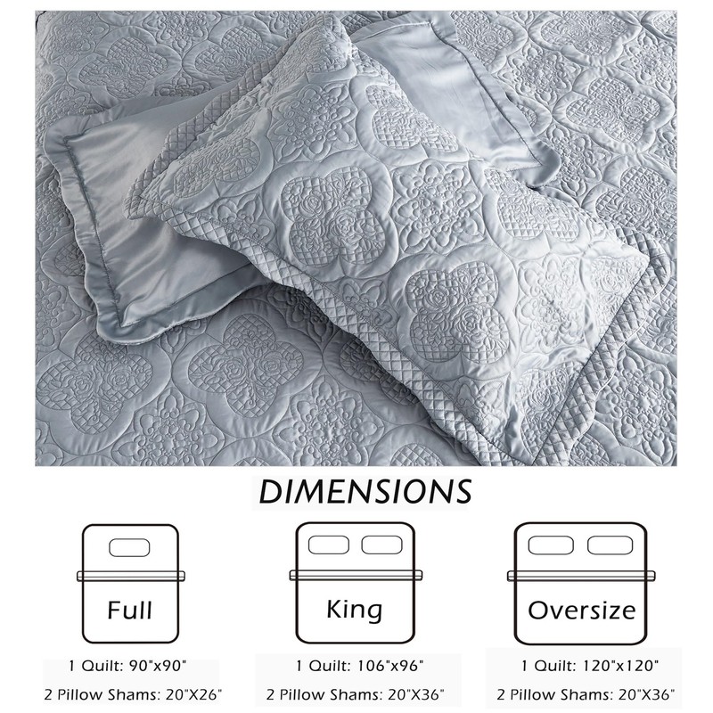 - 【Size】: This bed set includes 1 king quilt 120"x 120"+ 2 pillow shams 20"x 36". It is larger than most bedding on the market. This oversized comforter almost reaches the floor, making it perfect for larger or taller beds.