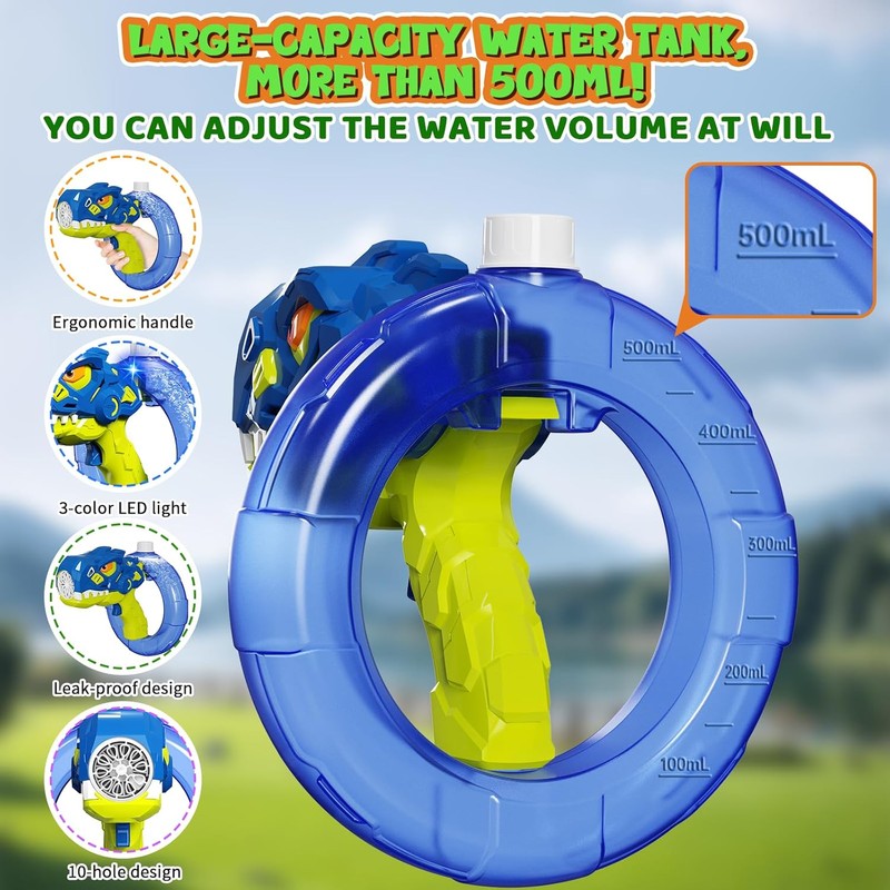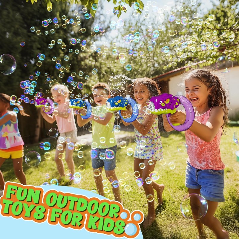 - 360-degree Leak-proof and Drop-resistant, 500ml Large Capacity Water Tank: Our bubble guns for kids ages 4-8 is made of durable ABS material, drop-resistant and tough. The 360° leak-proof design prevents bubble solution from leaking onto your hands during running and jumping. With a water tank capacity of 100-500ml, kids can enjoy hours of fun without the need to frequently refill the bubble solution