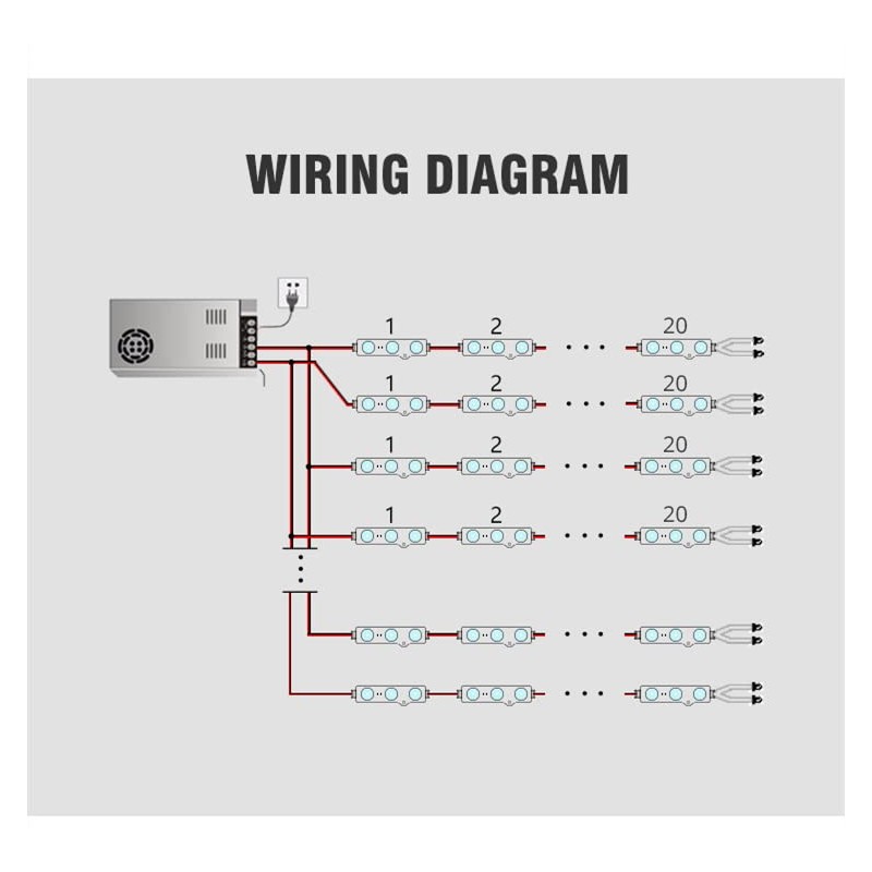 - 20 Pieces LED modules per string, 20 String per Pack, total 400pcs LED module, 30watt per string (20pcs*1.5W), cuttable, Power supply NOT included