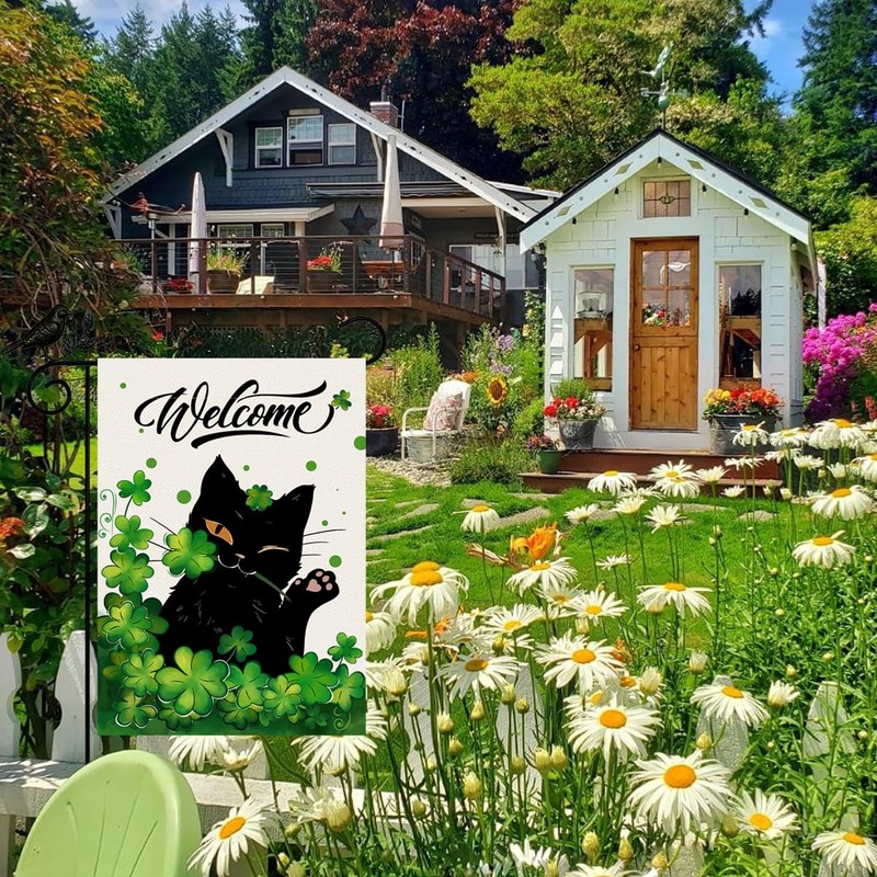 CMLTOALT Double Sided Premium Garden Flag, St. Patrick's Day Cat with Clover ...