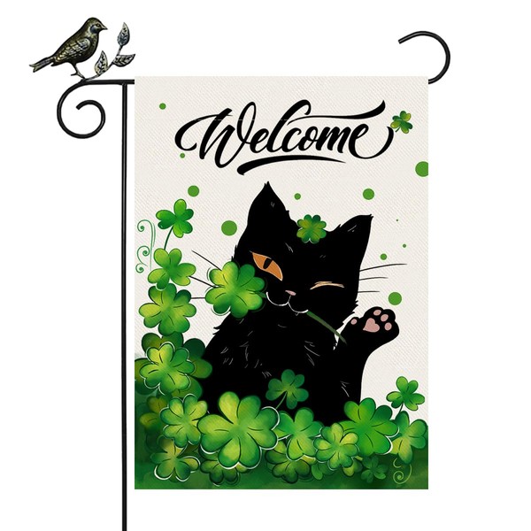 CMLTOALT Double Sided Premium Garden Flag, St. Patrick's Day Cat with Clover Decorative Garden Flags for Home Decor - Weather Resistant & Double Stitched Yard Flags-12x18"