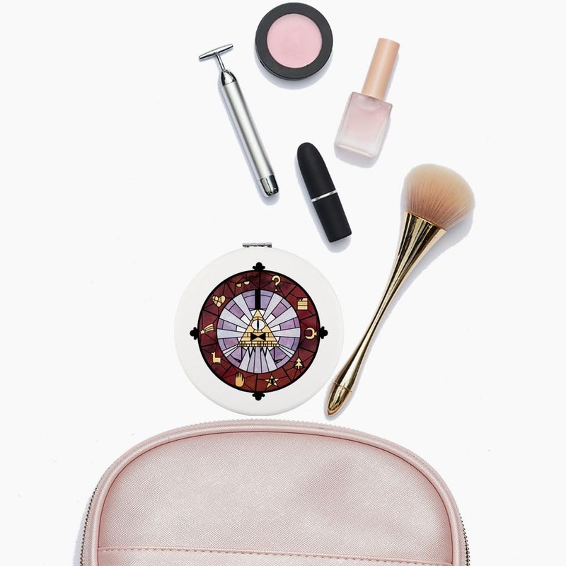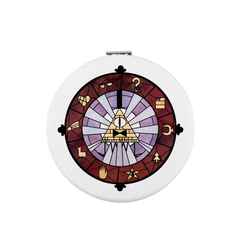 - MATERIAL: This is a bill cipher inspired compact mirror made of PU leather and glass, colorful and non-fading, magnets inside, making it easier for you to open and close. Small and lightweight easy to carry, suitable for travel, makeup, parties, outgoing, camping, party, and more other occasions.