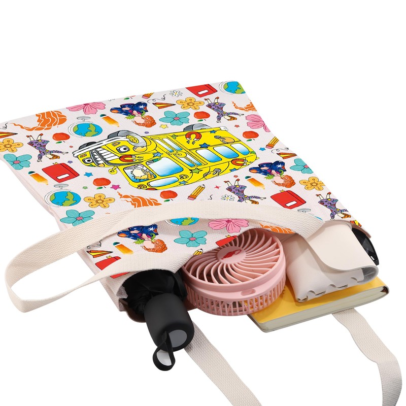 CMNIM Sch Bus Book Character Tote Bag Ms Frizzle Fans Gifts for Teacher Principal Bus Driver Educator Librarian Tote (Bus TE)