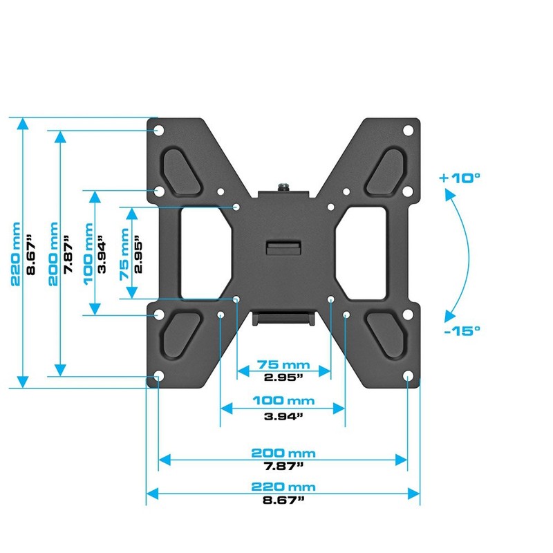 **Cmple Slim Tilting TV Wall Mount Bracket for 23” - 42” TVs, Max 44lbs / 20kgs** The Cmple 1097-N is a tilting wall mount for most 23''-42'' flat panel TVs up to 20kgs/44lbs. The tilting technology provides effortless adjustment of viewing angle without the use of tools. Its two pieces with preset-hole design allows easy installation. VESA compatible with 75x75, 100x100, 200x100 and 200x200. Set up your flat screen television with this Cmple Slim Adjustable Tilt TV wall mount, and create a functional work of art for your living room. Designed to take up little space, this mount features a low profile design that's sleek and modern. This Cmple Super Slim Tilt TV mount comes with everything needed for installation. Cmple Wall Mount is the perfect solution for wall mounting your flat panel TV at the desired height. This mount is made of heavy gauge steel construction. This rugged mount will provide years of reliable service. Compatible with VESA patterns up to 200mm x 200mm. It fits most 23"-42" flat panel TVs up to 20kgs/44lbs. It features safety locking bar and ultra slim profile of only 19mm. Strength has been tested for a minimum of three times its stated load capacity. **Features:** Tilt TV Wall Mount Compatible VESA patterns: 75x75, 100x100, 200x100, 200x200 Max TV weight: 44lbs or 20kgs Tilt Range: 10°~-15° Steel construction Mounting hardware is included Profile: 39mm (1.5”) Dimensions: 39x220x220mm (1.5"x8.7"x8.7")