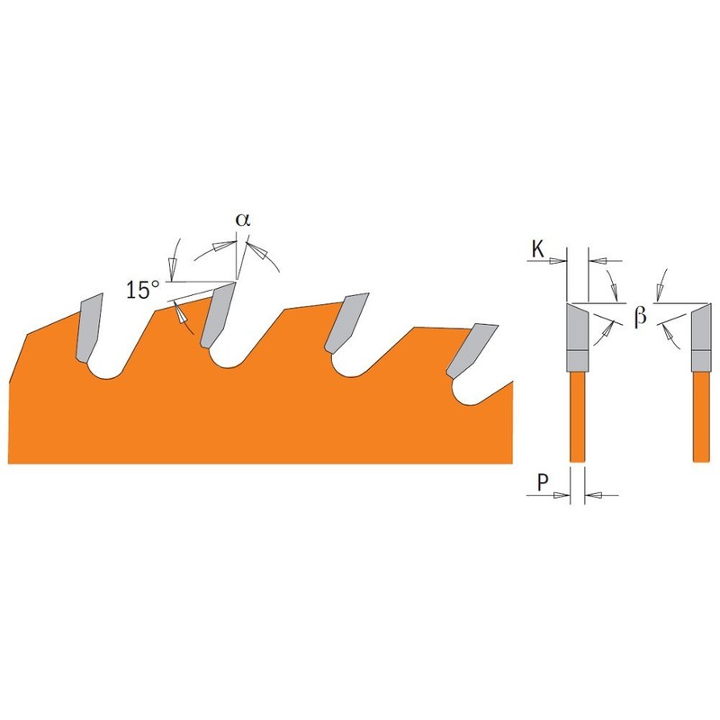 • 0.098 kerf thickness, 0.071 plate thickness, 5° Hook Angle, 40° Alternate Teeth Grind.